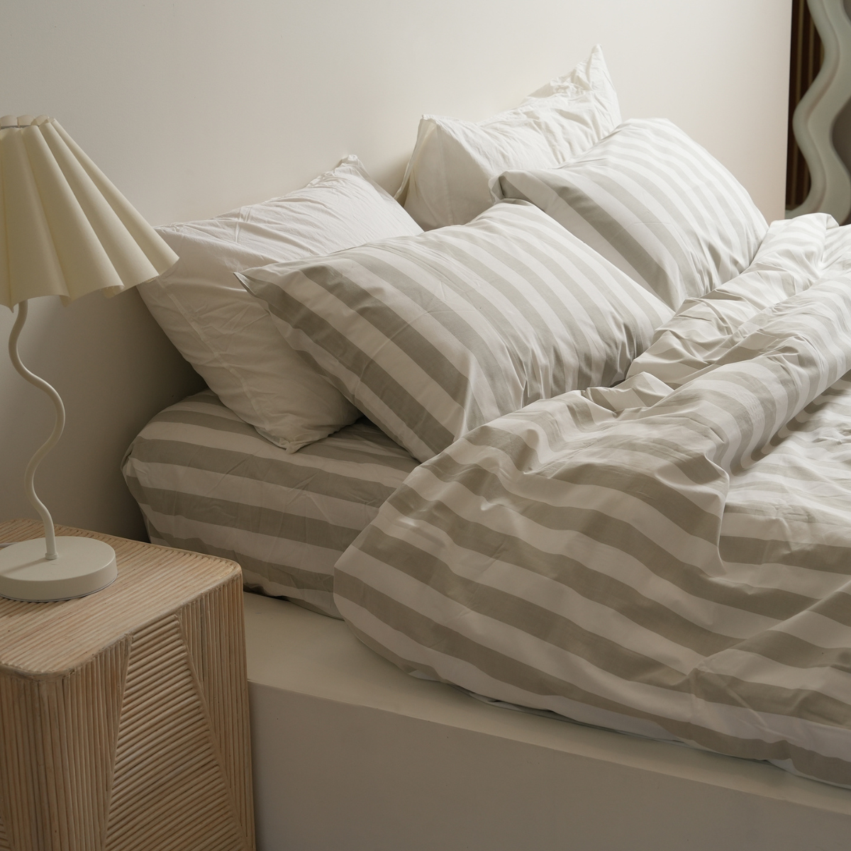 100% Stonewashed Cotton Duvet Set- Olive Stripe