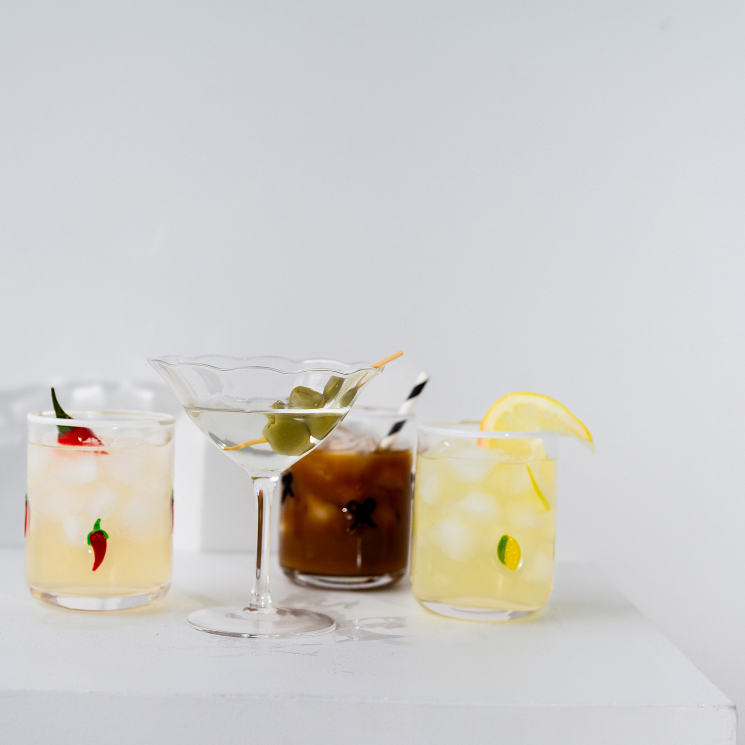 Fleur Highball Glasses- Set of 4- Green/Lilac