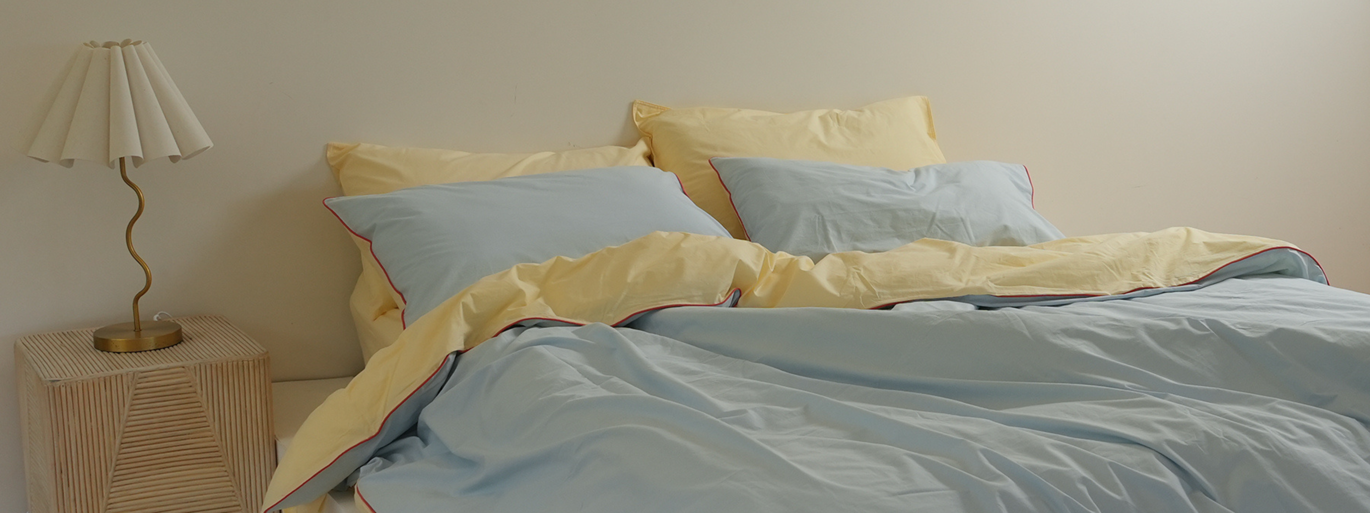 100% Stonewashed Cotton Pillowcase Pair- Butter/Sky Reversible