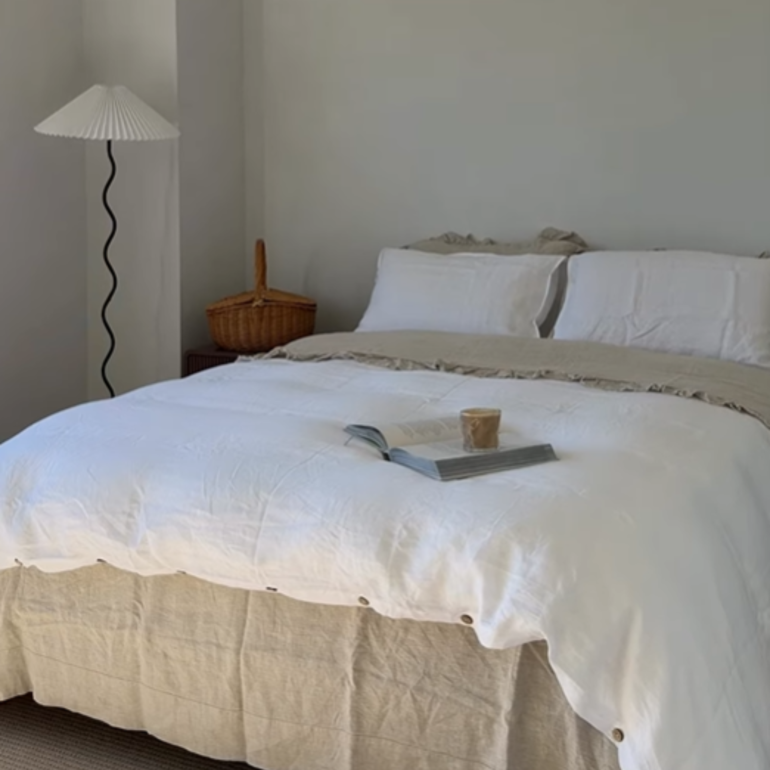 French Flax Linen Bed Skirt- White