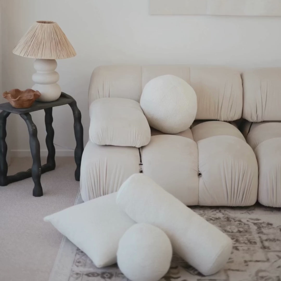 100% Flax Linen Round Feather Filled Cushion- Natural Oat